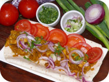 Indiase wrap, mild of pittigHeerlijke wraps met Indiase invloeden. mild of pittig. kip of gehakt.