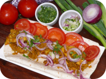 Indiase wrap, mild of pittigHeerlijke wraps met Indiase invloeden. Mild of pittig Kip of gehakt.